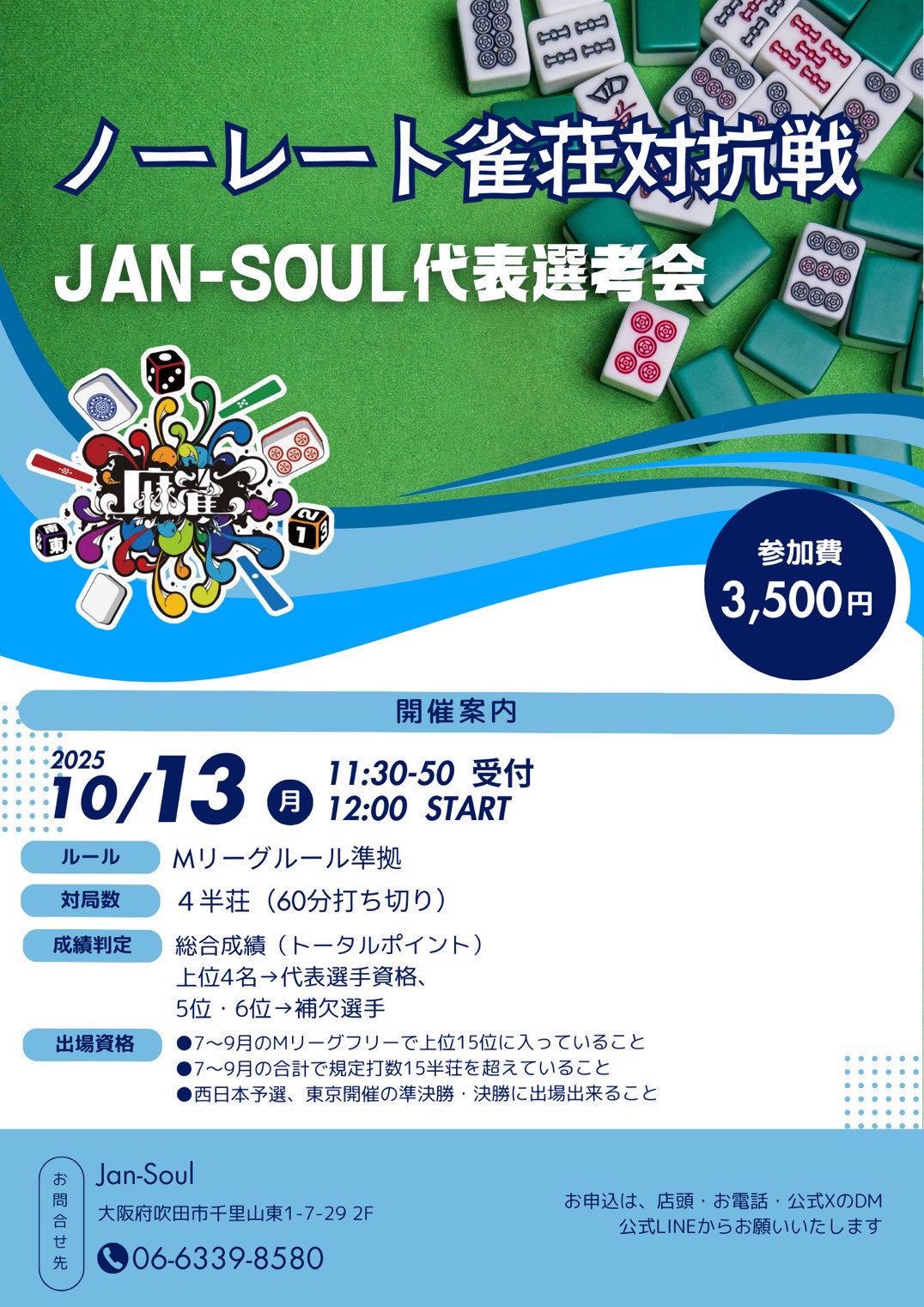 2025年8月3日(日)ノーレート雀荘対抗戦 代表選考会